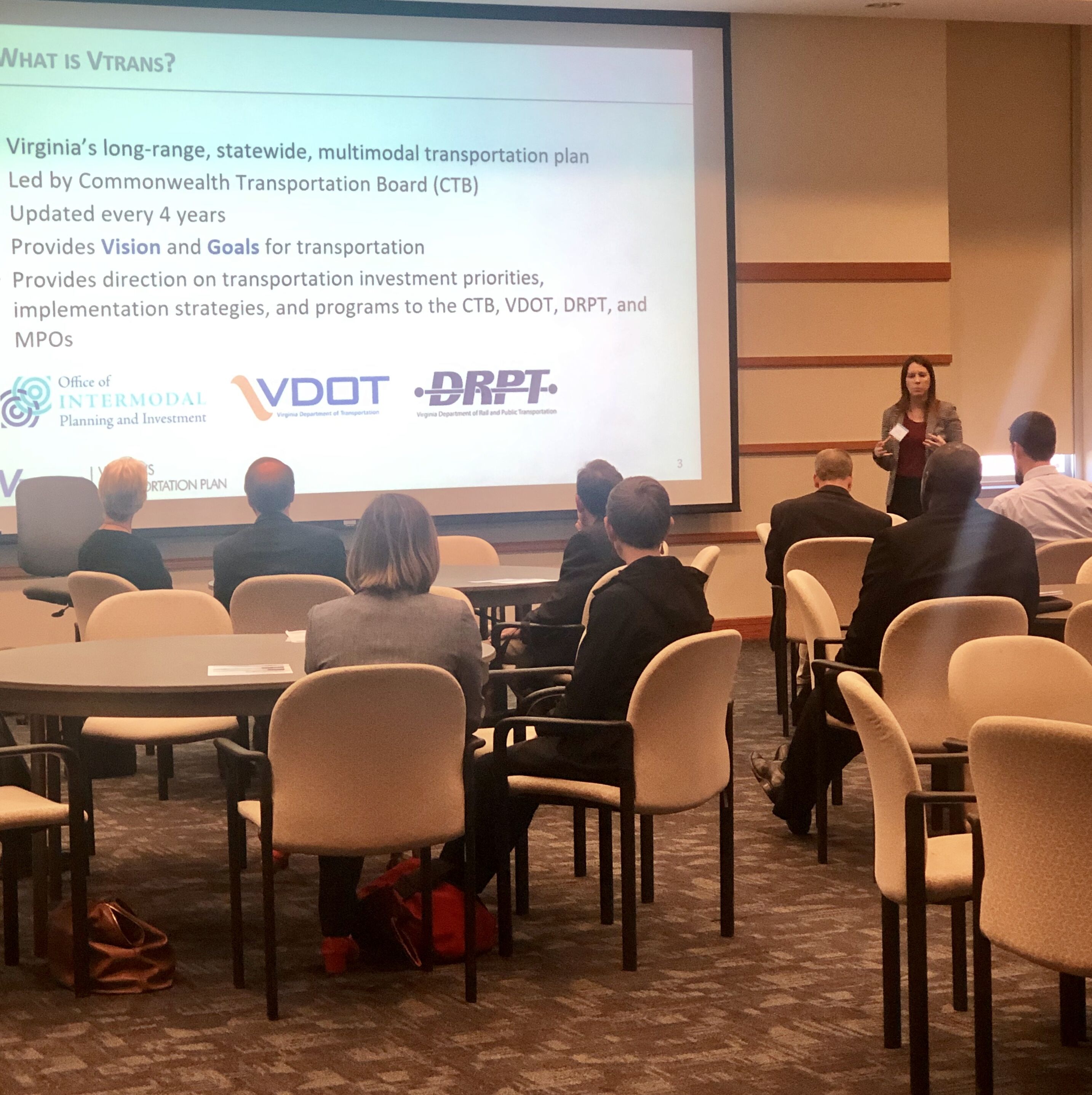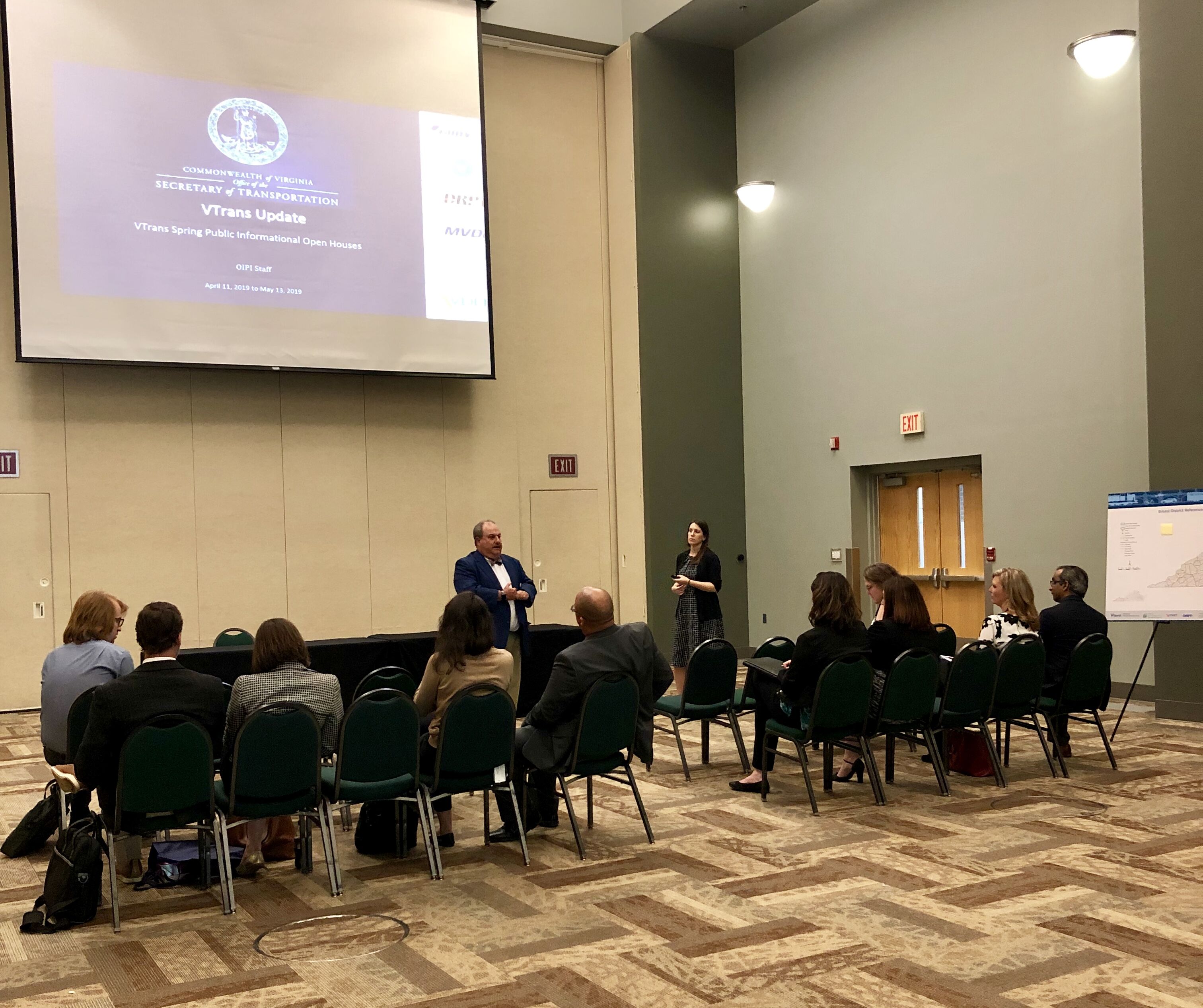 - Brief Description: This meeting included an opportunity for the public to meet with OIPI staff and hear about the next update of VTrans, Virginia's transportation plan, along with other topics presented by the Secretary of Transportation, Commonwealth Transportation Board, Virginia Department of Transportation, and Virginia Department of Rail and Public Transportation.