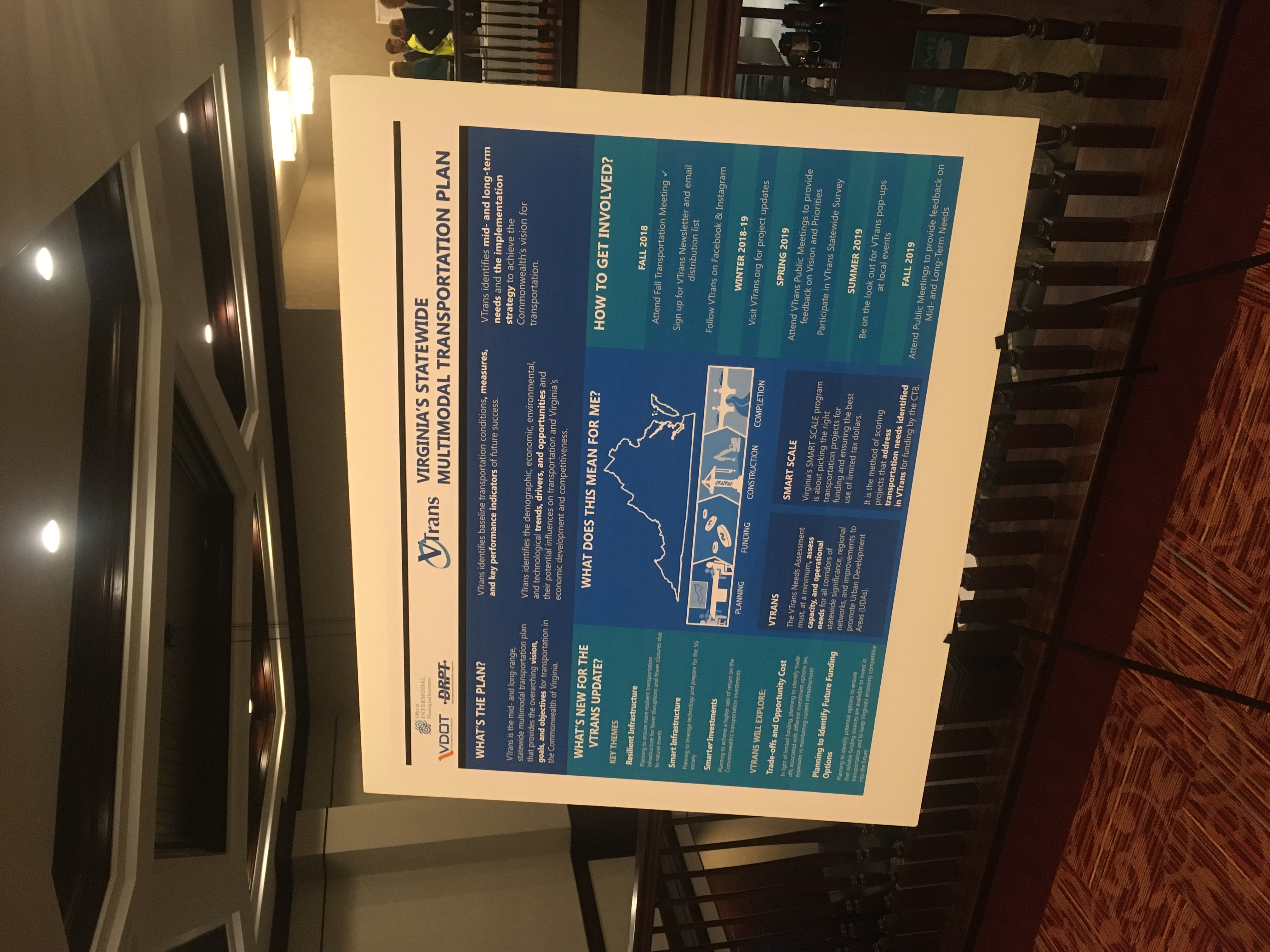 This open house took place in the same location as, but an hour ahead of, the Spring Transportation Meetings in each District. The purpose of the Spring Transportation Meetings is to discuss the draft FY2020-2025 Six Year Improvement Program with members of the Commonwealth Transportation Board, Virginia Department of Transportation, and Virginia Department of Rail and Public Transportation.